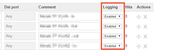 Under Logging, from the drop-down to select Enabled for each firewall rule to allow the device to register the network connections.